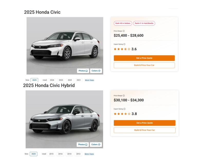 如果说燃油版中,美国版思域2.0L的发动机与中国版思域1.5T的发动机可比性较弱,那么差别更小的混动版本则更具说服力。数据显示,2025款思域混动版起售指导价为13.99万元,优惠后经销商报价同样来到了10万级。