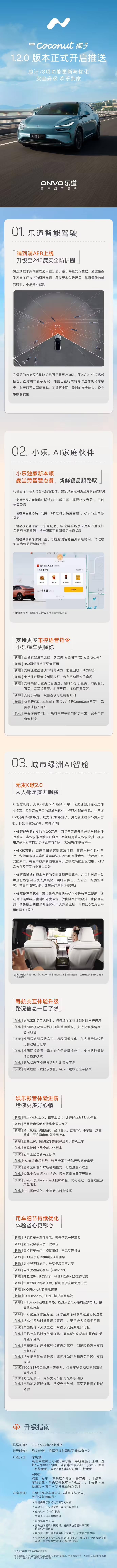 凤凰网科技讯 5月29日,蔚来乐道今日宣布Coconut椰子1.2.0版本正式开启推送,端到端AEB上线,升级至240度安全防护圈,支持麦当劳智慧点餐,无麦K歌升级2.0。