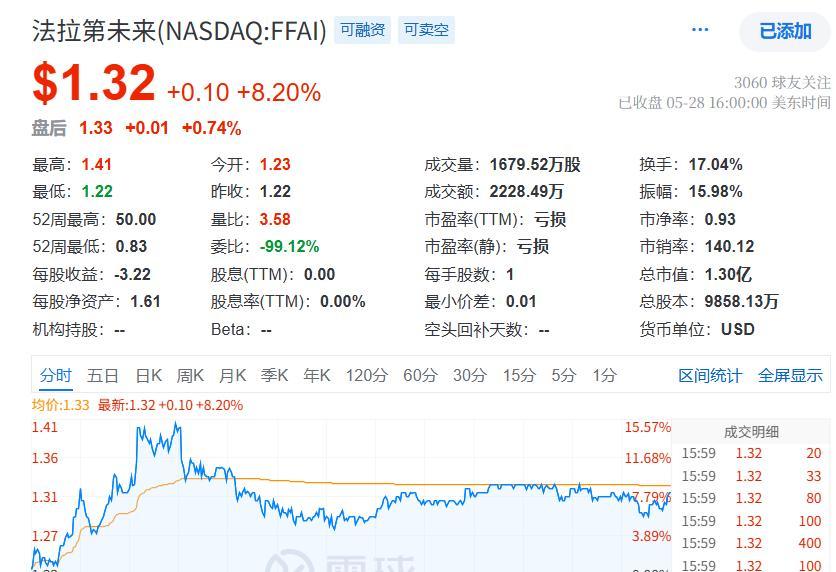 市场反应迅速且积极。在美股三大指数集体下跌、新能源车板块整体疲软的背景下,FFAI股价强势突破技术阻力位,盘中最高涨幅达16%,最终收涨8.2%。机构分析师认为,此次股价异动与贾跃亭主动增持存在明确关联。随着FX产品线的逐步推进和量产时间节点的临近,FF能否在2025年实现战略目标将成为检验其商业模式的关键节点。