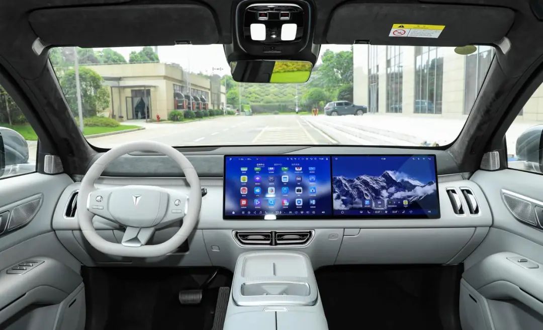 岚图FREE+在车内提供了极光紫,琥珀棕,深海蓝三种内饰颜色。搭载了15.6英寸2K超清屏,可实现五屏联动,支持鸿蒙手机一键投屏及跨设备任务流转,音频、导航等信息可无缝同步至车机,后排MagLink拓展坞可兼容多品牌平板电脑。