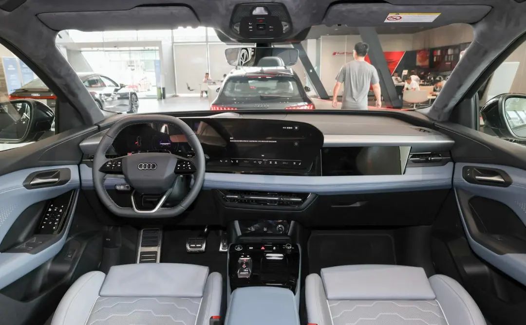 车内部分使用了目前奥迪家族最新的设计风格,弧形的主驾仪表、中控贯穿屏和副驾屏,分别是11.9英寸、14.5英寸和10.9英寸,此外还有一块88英寸的AR-HUD,整体视觉上科技感拉满。
