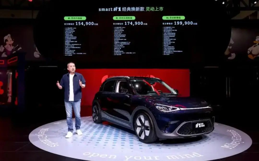 再来看一款实用小车,也就是新款smart精灵#1,新车共推出3款,售价区间为15.49万元-19.99万元。虽然是新车,但在外观上依旧采用了之前车型的设计理念,贯穿式LED大灯组与三角样式大灯相连,下方是大尺寸的散热格栅。此次新车将新增两个车身颜色,分别是月瓷白与星璇蓝。车身尺寸上,长宽高分别为4300/1822/1636mm,轴距为2750mm。