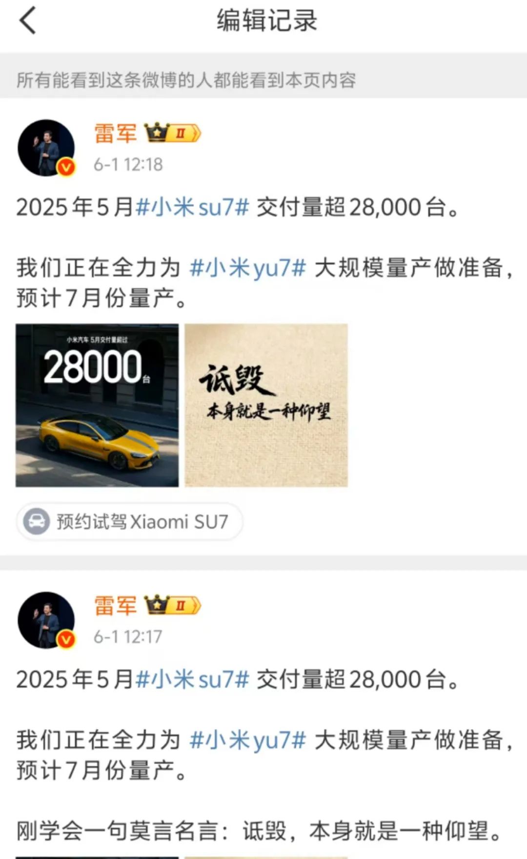 或许是因为初战未捷,雷总时隔18个小时,早上六点多钟又发布了一条疑似回应的微博。