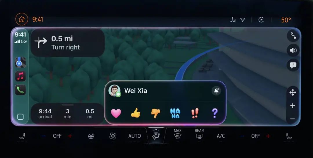 用户可以根据自己的喜好,自由选择仪表盘和中控屏的布局与设计风格。苹果表示,他们正在与各大汽车厂商紧密合作,将车企自己独特的设计语言和车辆功能,与 iPhone 的强大能力相结合。