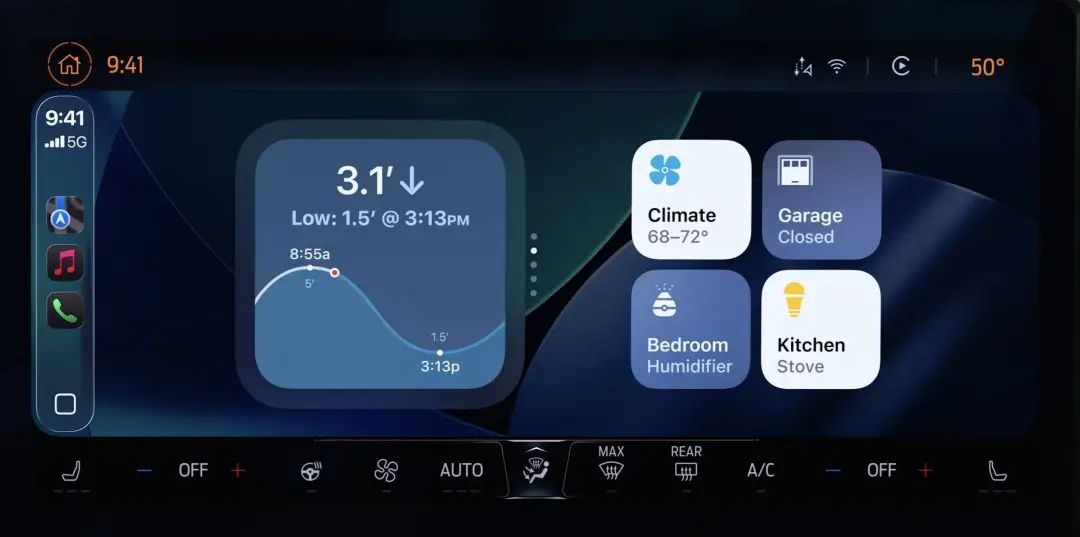 CarPlay Ultra 不再仅仅是一个投射的 App 界面,它现在可以直接控制车辆的核心功能,比如调节收音机、空调温度等,都可以在 CarPlay 的界面内完成,无需再跳转回汽车的原生系统。