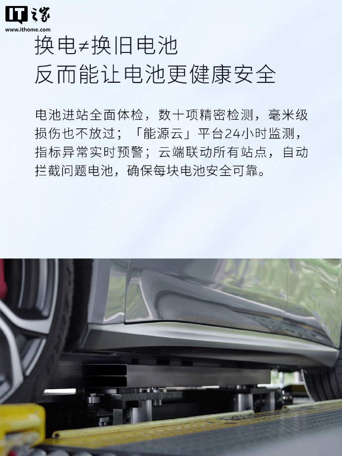 另外,蔚来还表示:“换电≠换旧电池,电池进站全面体检,数十项精密检测,毫米级损伤也不放过;「能源云」平台 24 小时监测,指标异常实时预警;云端联动所有站点,自动拦截问题电池。”