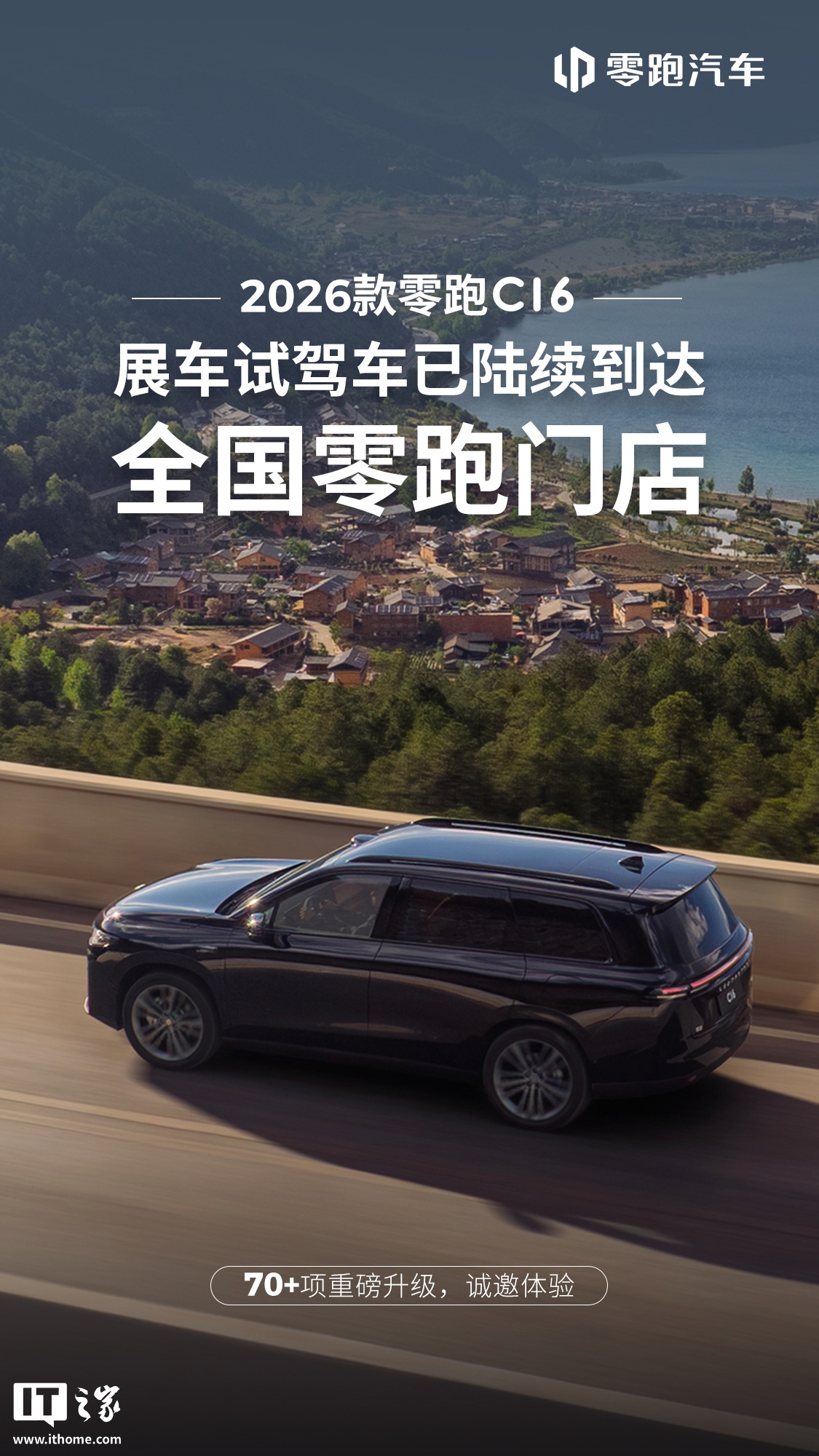 另外,零跑汽车今日还宣布,2026 款零跑 C16 展车试驾车已陆续到达全国零跑门店,该车将于本月中下旬上市:新增 5 座版本、预售价 16.98 万元起。