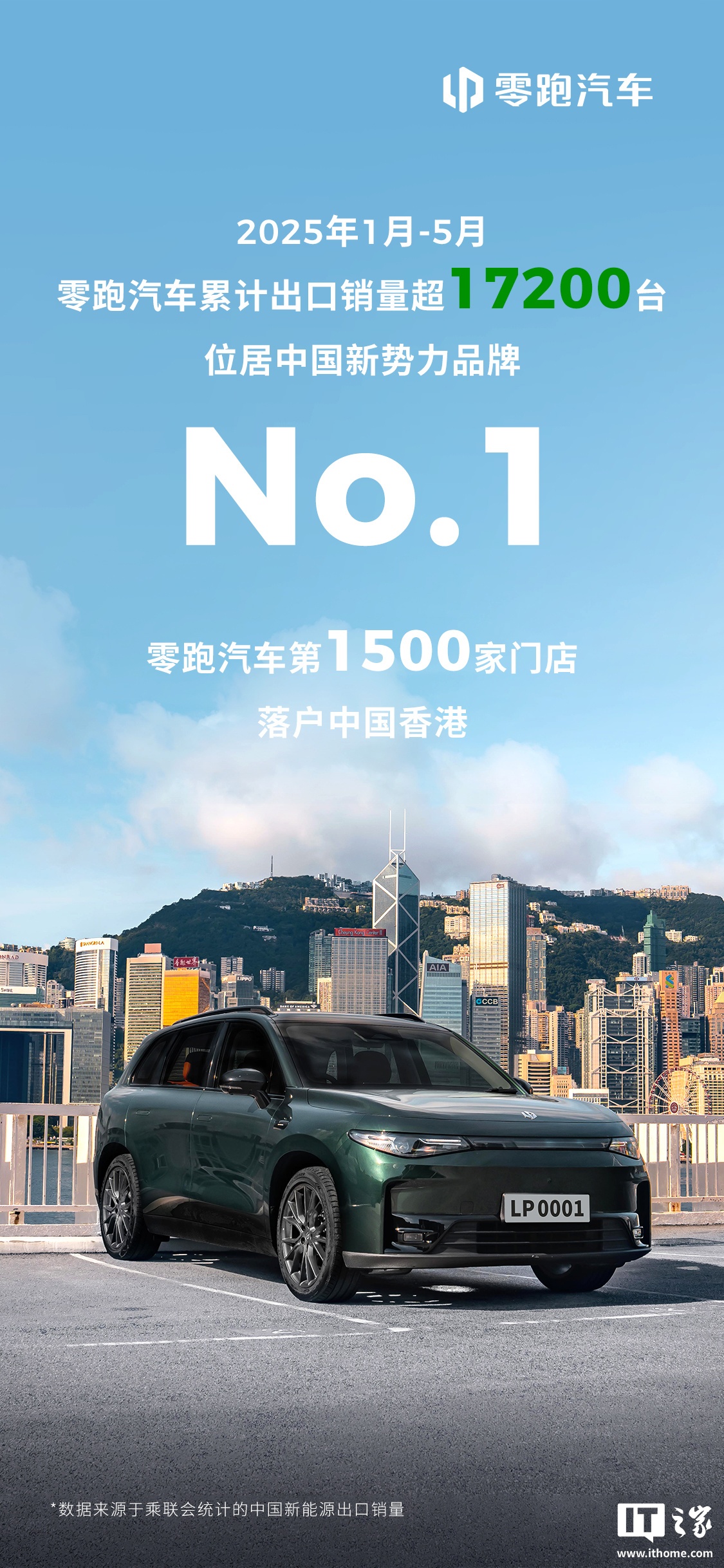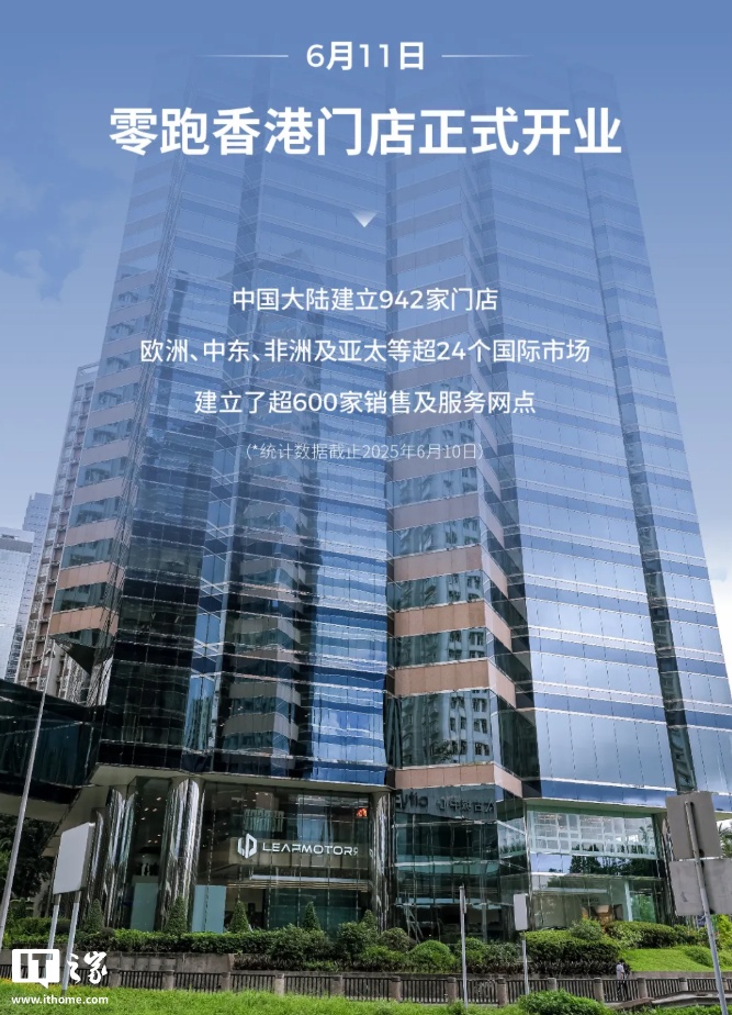 IT之家 6 月 12 日消息,零跑汽车官方微博今日发文宣布,其 2025 年 1 月-5 月累计出口销量超 17200 台,位居中国新势力品牌 No.1。另外,零跑汽车全球第 1500 家门店正式落户中国香港。