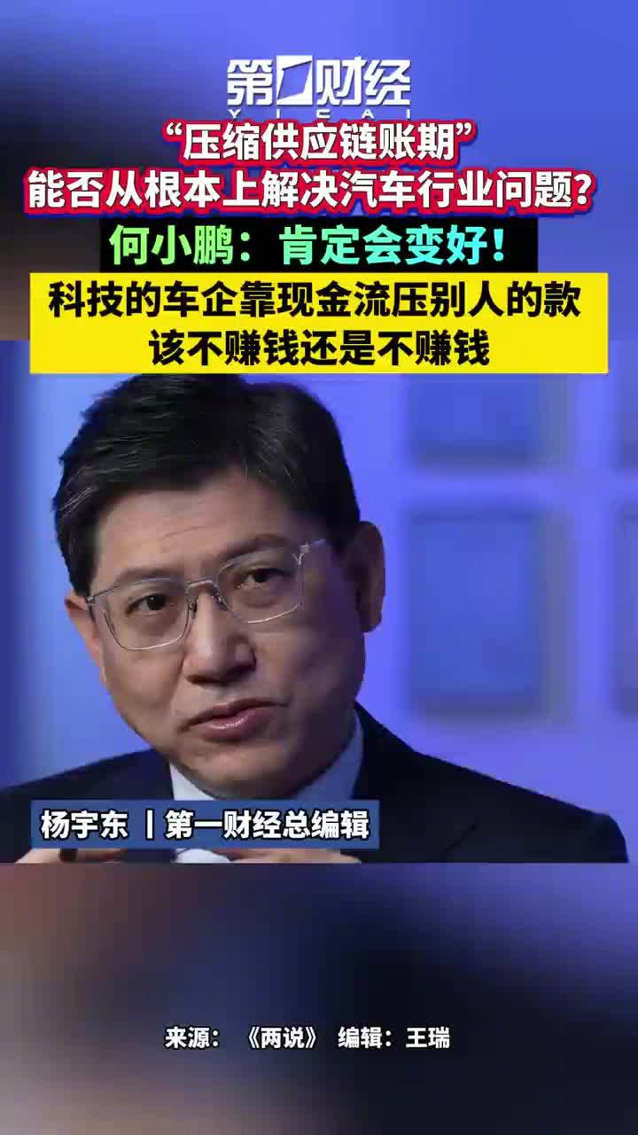 何小鹏表示,科技的造车企业靠现金流压别人的款,压了三个月,照样也是不赚钱。如果企业越大、越强、越科技的公司,就应该越有社会责任感。我是认为风向变好非常重要。