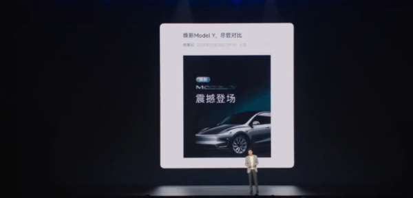在发布会上,雷军广泛提及的唯一对标竞品就是特斯拉Model Y。他甚至展示了特斯拉年初对外发布的“尽管对比”战书,表示:“虽然他们很厉害,做得很好,我们也要有敢于亮剑的精神”。