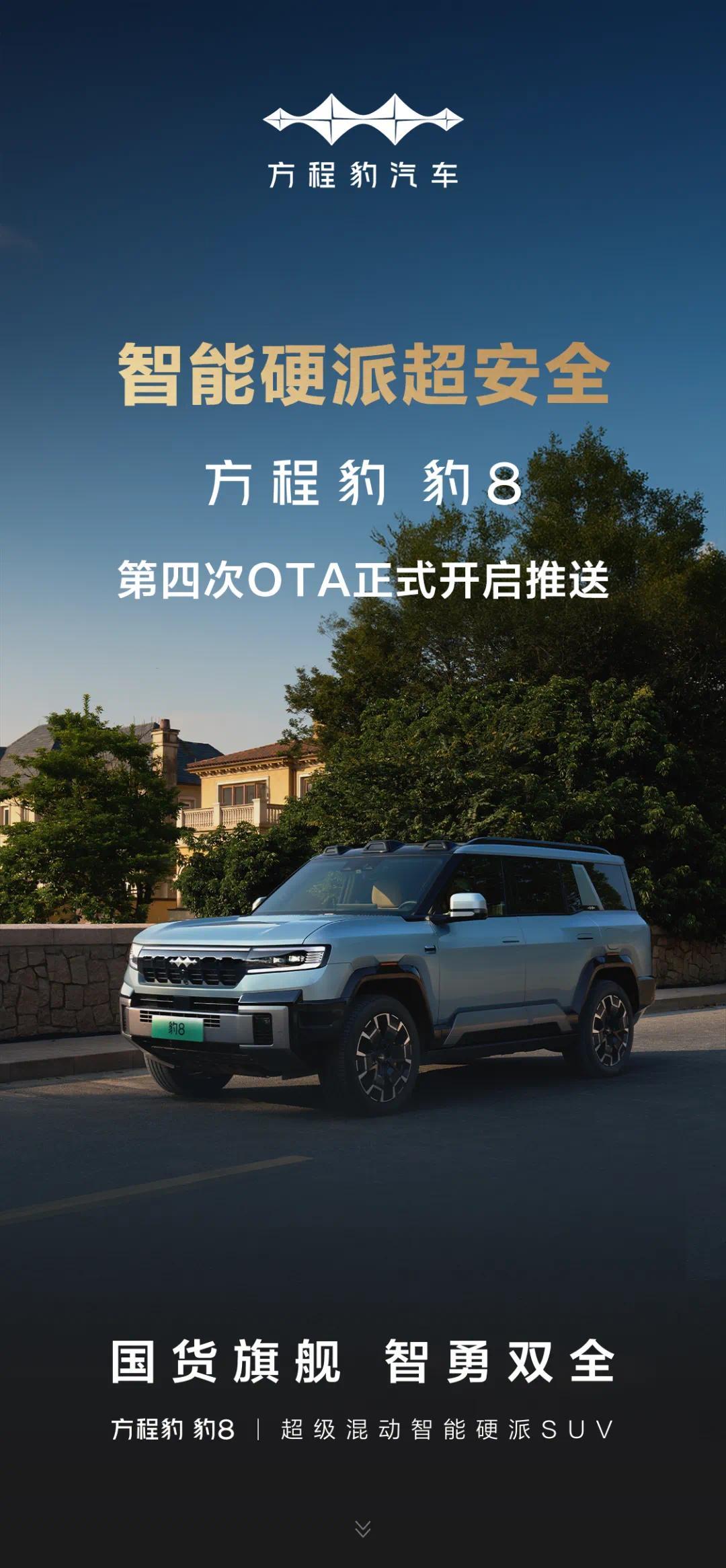 除此之外,豹8第四次OTA升级还新增遥控泊车辅助、增强型自动紧急转向、紧急转向辅助等功能。此次OTA升级于7月1日正式开启推送。