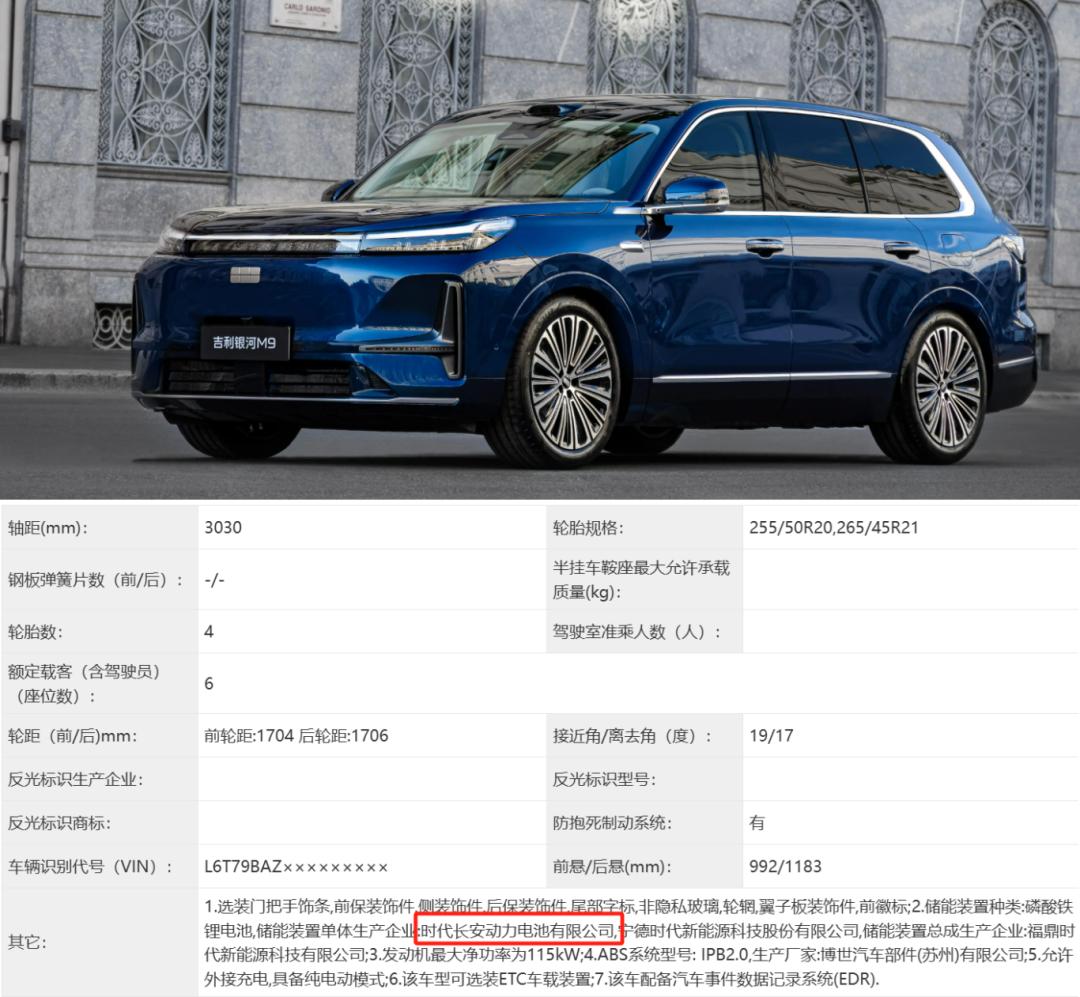 根据新一批工信部新车公告,即将上市的吉利银河A7、银河M9、领克10 EM-P三款新能源车型,其申报的电池单体电芯供应商不仅有目前供应吉利最大的电池厂商宁德时代,还有时代长安。