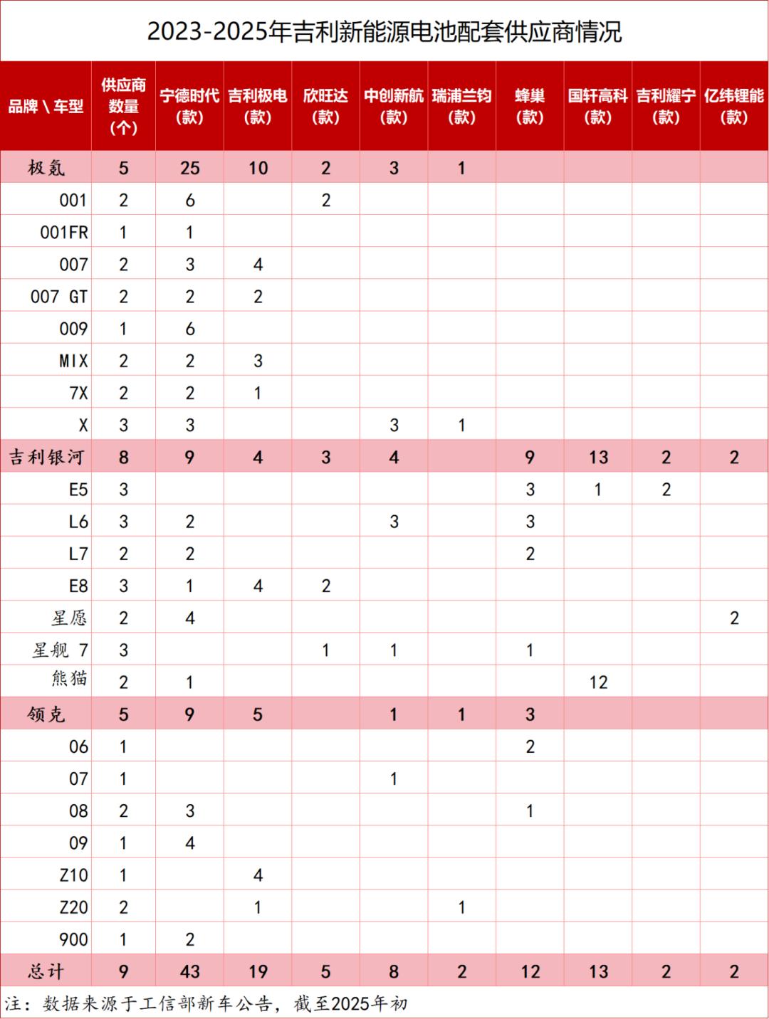 纵观2023年到今年初吉利新能源申报的车款中,涉及的电池供应商就包含了宁德时代、蜂巢、国轩高科、中创新航、亿纬锂能,当然也包括自己旗下的衢州极电和耀宁,吉利虽然没有特别强大的电池自供能力,但吉利作为目前除比亚迪以外最大的新能源车企,要找到充足的动力电池供应保障不是问题。