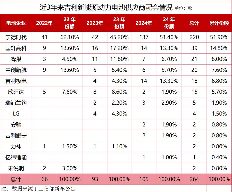 一方面,吉利拥有广泛的动力电池朋友圈。