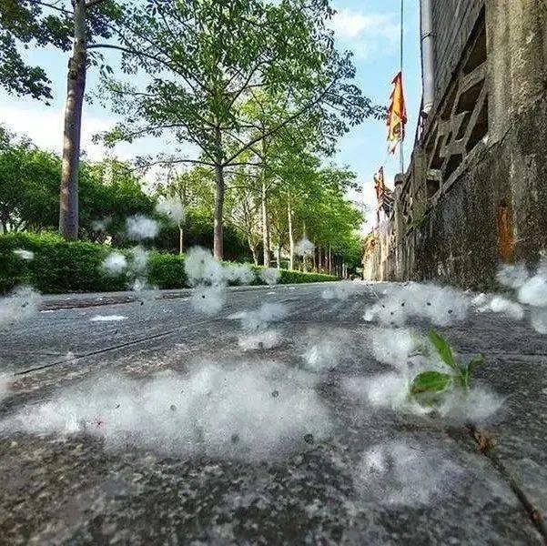 这些烦人的东西除了会让你打喷嚏以外,多起来还会成这样。。。视觉上跟下大雪没啥区别了,真就是“未若柳絮因风起”(这东西还是易燃物,千万别点燃嗷)