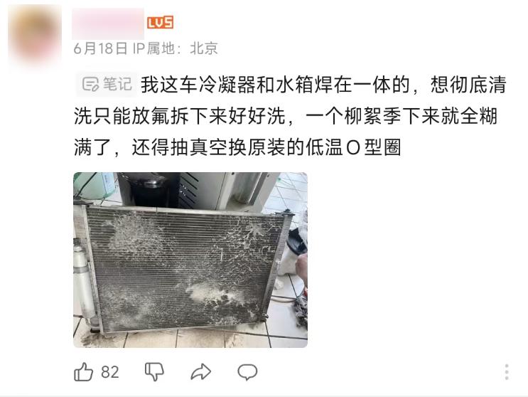 这种情况下开高速开久了,汽车散热器上就会形成一层杨絮“棉花糖”,堵住散热。。。