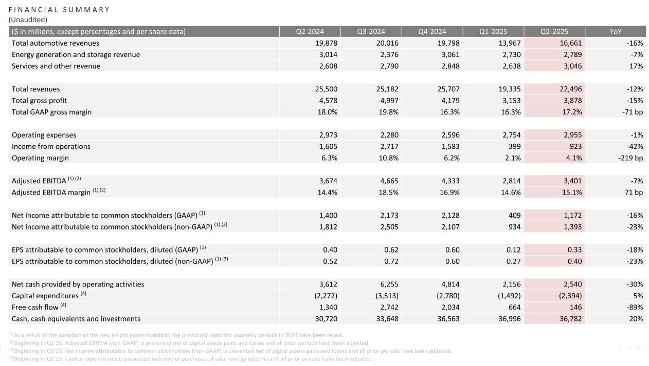 此外,特斯拉第二季度归属于普通股股东的净利润为 11.72 亿美元(现汇率约合 84.08 亿元人民币),与去年同期的 14.00 亿美元相比下降 16%。