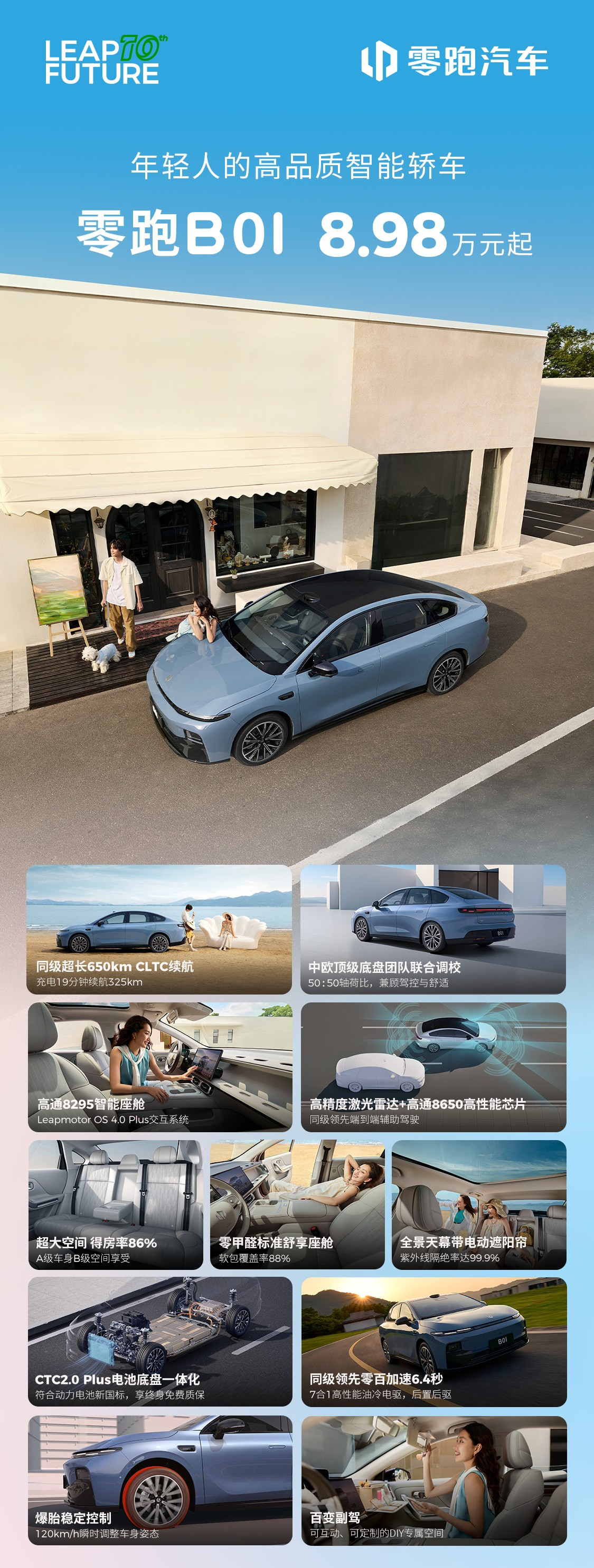 IT之家 7 月 24 日消息,零跑 B01 纯电轿车今晚正式上市,提供 6 款不同配置,CLTC 工况续航里程有 430 km、550km 和 650km 三种版本。