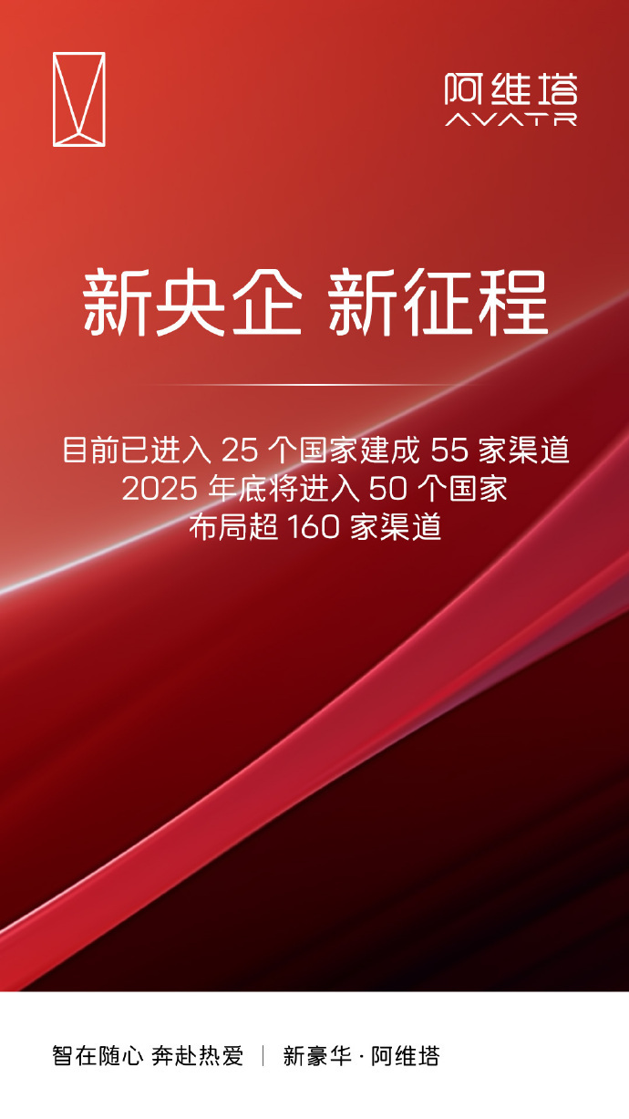 另据阿维塔官方微博消息,阿维塔数智工厂挂牌,年产能28万,已进入25个国家建成55家渠道,2025年年底将进入50个国家,布局超160家渠道。