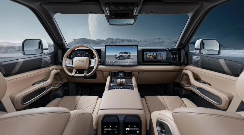 豹 8 基于比亚迪 DMO 超级混动越野平台打造,将提供云辇-P 主动液压车身控制系统,新车长宽高分别为 5195/1994/1875(1905)mm,轴距为 2920mm。