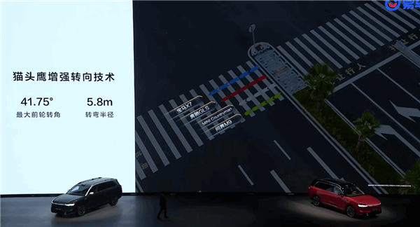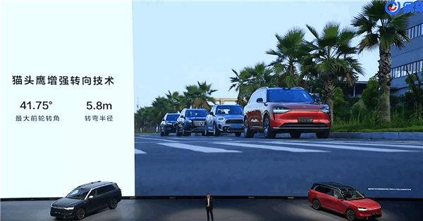 此外,问界M5五座版还首发了猫头鹰增强转向技术,前轮最大转向高达41.75°,超大的转向角,带来非常小的转弯半径,5.23米的车长,其转弯半径只有5.8米。
