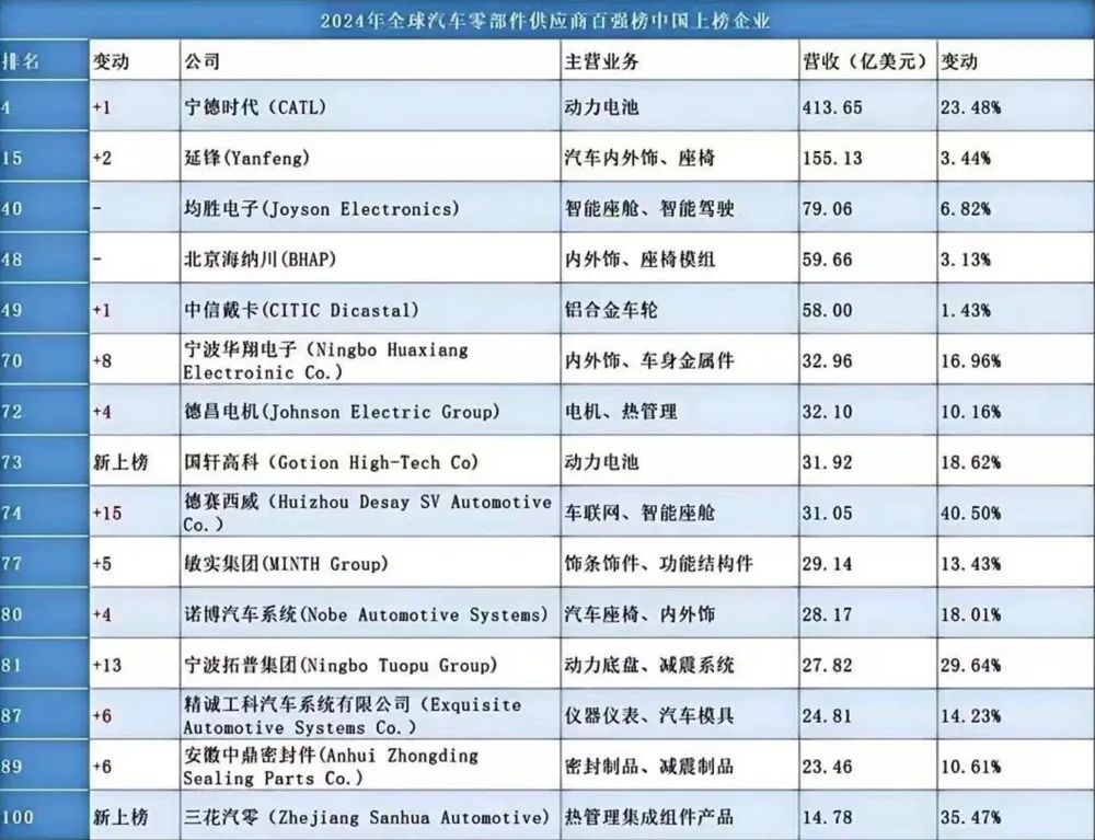 图/2024年全球汽车零部件供应商来源/互联网 新能源观截图