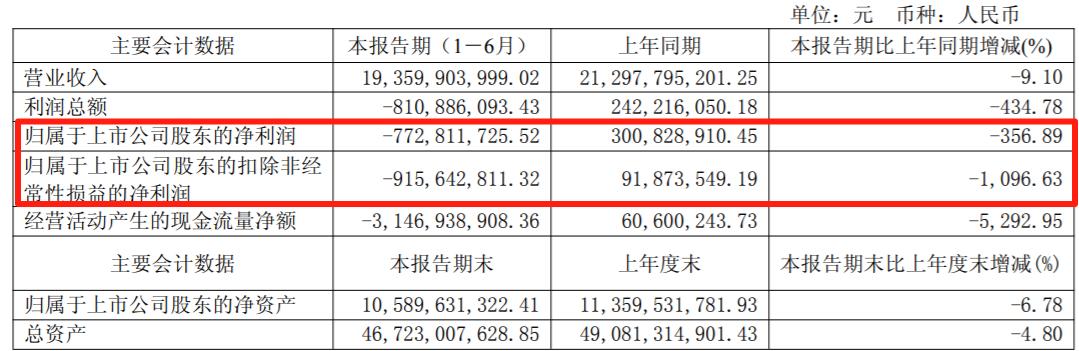数据显示,江淮汽车上半年实现营业收入193.6亿元,同比下降9.1%,相比去年同期4.79%的下滑幅度再次扩大;归属于上市公司股东的净利润为-7.73亿元,同比下滑达356.89%,下滑幅度创下多年半年报新高;归属于上市公司股东的扣除非经常性损益的净利润-9.16亿元,上年同期为9187万元,同比下降高达1096.63%。