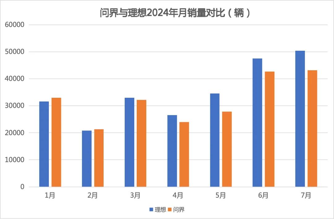 但时至下半年,势头有所减弱。 根据问界数据,今年8月,问界交付新车31216辆,环比下滑25%,相比理想汽车的48122辆,差距拉大。