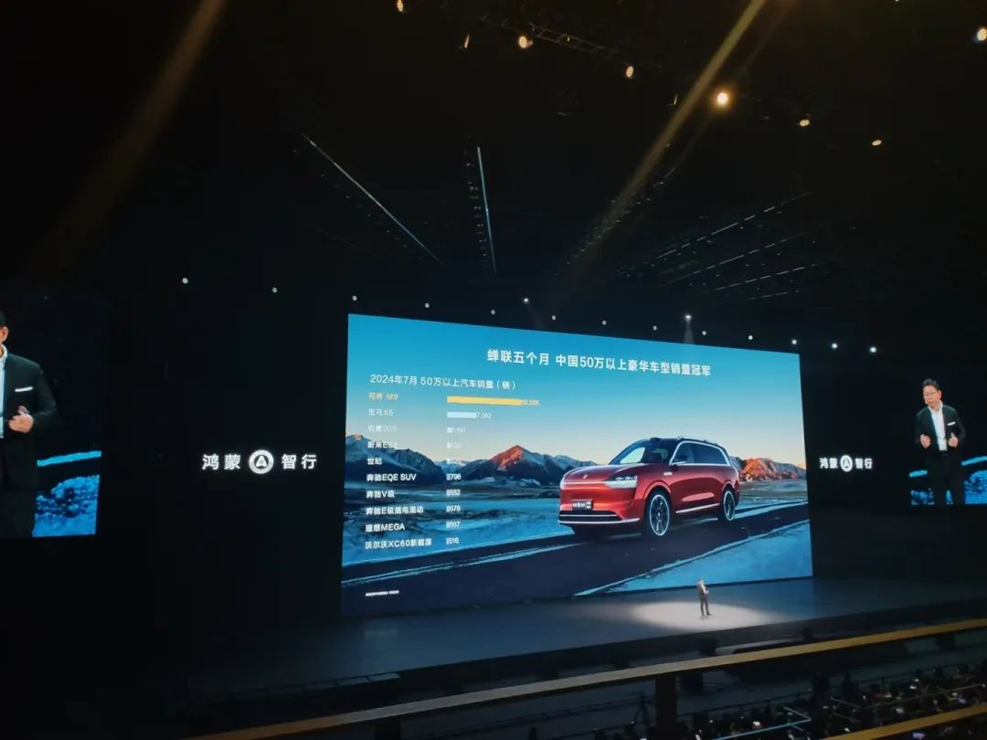 而今,余承东在此次发布会上骄傲地宣布,“在50万元以上车型细分市场,问界M9不但是销量第一,而且还超过了第二名到第十名之和。”就在7月份,问界M9达到18,335辆的月销量新高;第二名宝马X5为7,062辆,一直加到第十名合计13,224辆。
