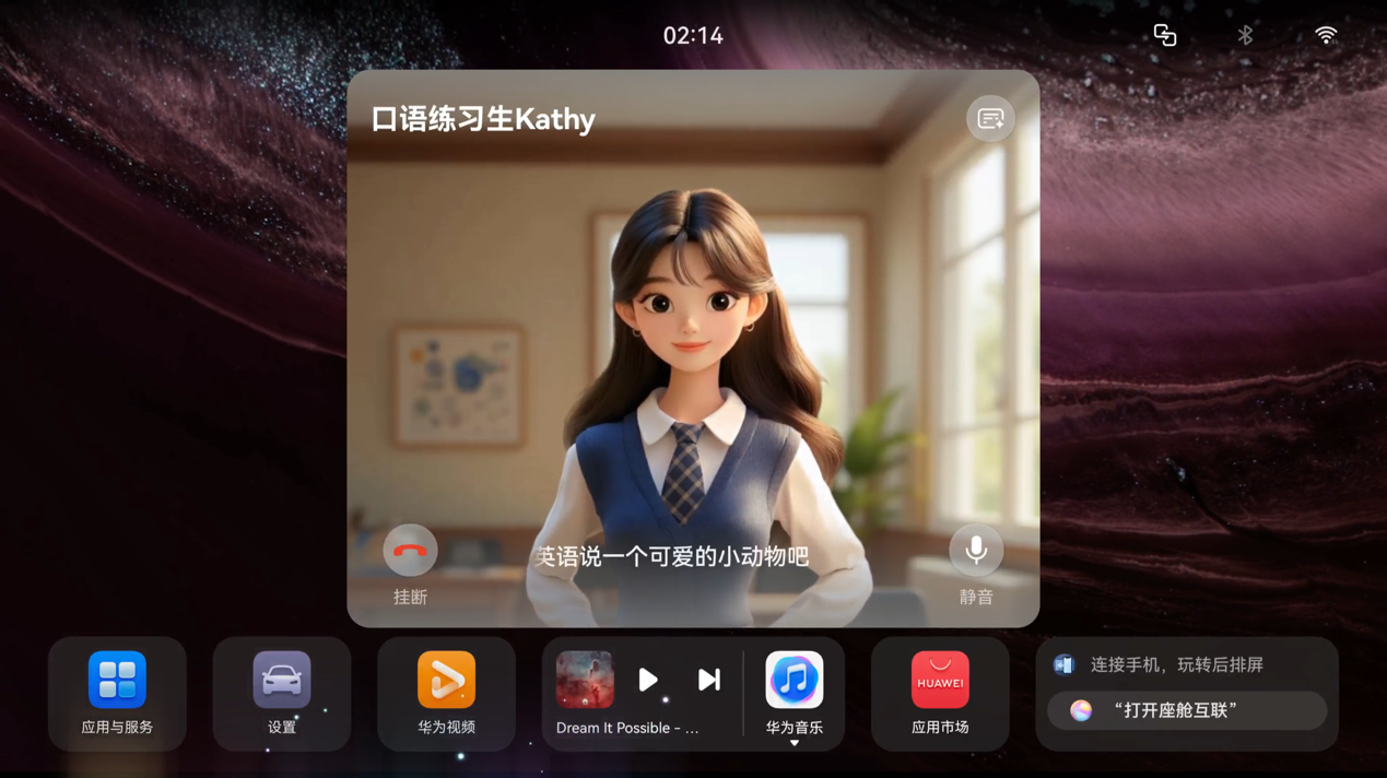 比如首先值得大家体验的就是口语练习生智能体 Kathy。如果你是带着孩子自驾出游,那么在路上也可可以随时召唤口语练习生 Kathy,来帮助孩子进行场景化的口语对练。无论是在停车状态下通过大屏进行系统学习,还是在行驶状态下以胶囊形态进行碎片化练习,都让学习英语口语变得随处可行。