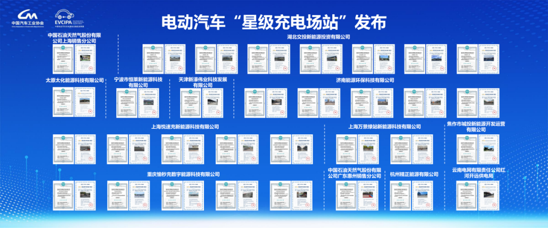 依托新标准,经严格评审,本次大会共发布 70 家充电运营企业的 11 座三星级充电场站、55 座四星级电动汽车充电场站、200 座五星级电动汽车充电场站。