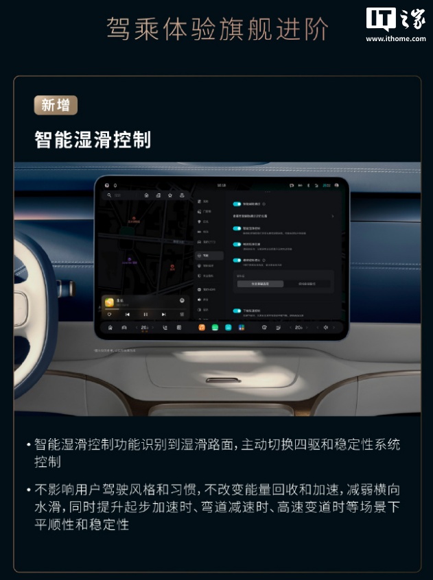 不影响用户驾驶风格和习惯,不改变能量回收和加速,减弱横向水滑,同时提升起步加速时、弯道减速时、高速变道时等场景下平顺性和稳定性