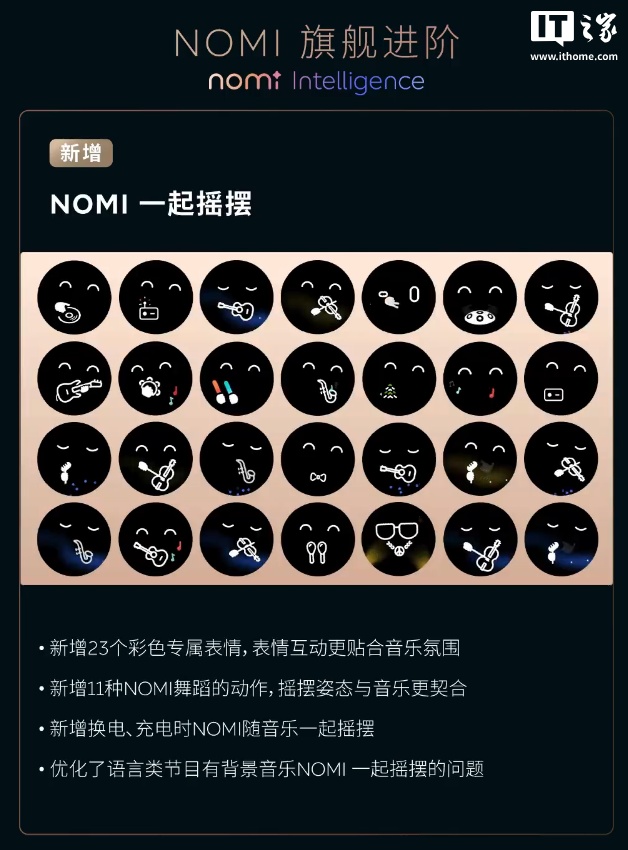 新增 11 种 NOMI 舞蹈的动作,摇摆姿态与音乐更契合