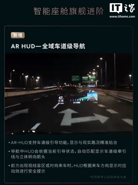 AR-HUD 支持车道级引导功能,显示与现实路况精准贴合