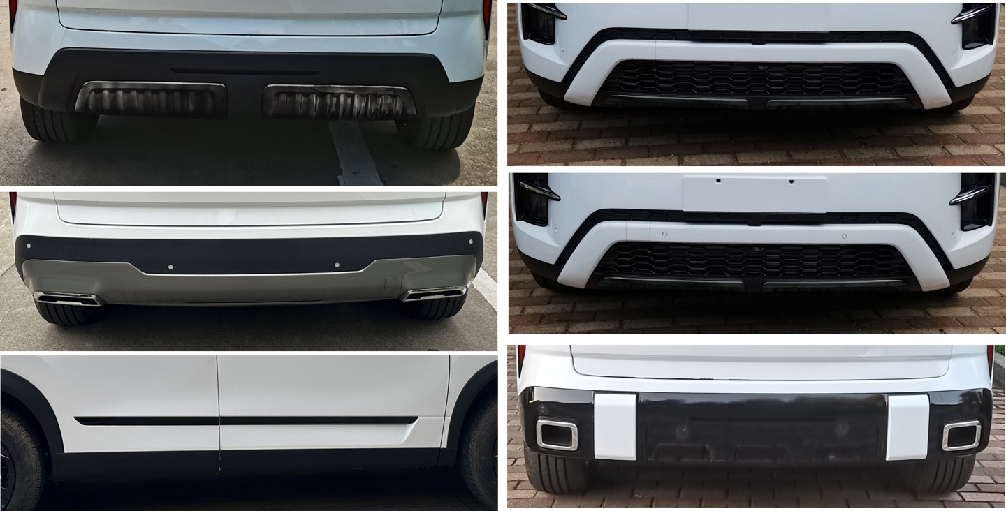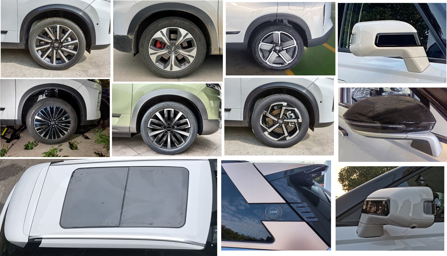 该车倒梯形格栅、日间行车灯以及尾部造型都与路虎揽胜极光 L “神似”,但侧面则是探索 06 的风格。其长宽高分别为 4545/1898/1670mm,轴距为 2672mm。但与此同时,新车又提供了多种前脸造型可选,包括封闭式、多种样式的格栅,尾标也可选“探索 06 / PRO”的车名。
