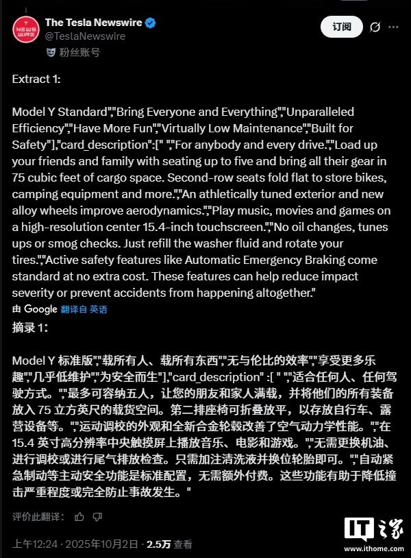 IT之家 10 月 2 日消息,备受期待的特斯拉 Model Y 低价版本可能很快推出,该公司官网源代码中已悄然出现全新“Model Y 标准款”(Model Y Standard)的相关信息,为这款流传数月的低价车型提供了迄今为止最明确的线索。