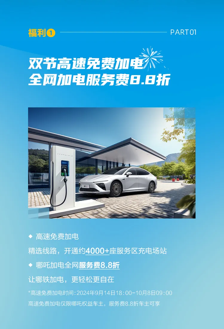 高速免费加电仅限哪吒权益车主,服务费 8.8 折车主可享