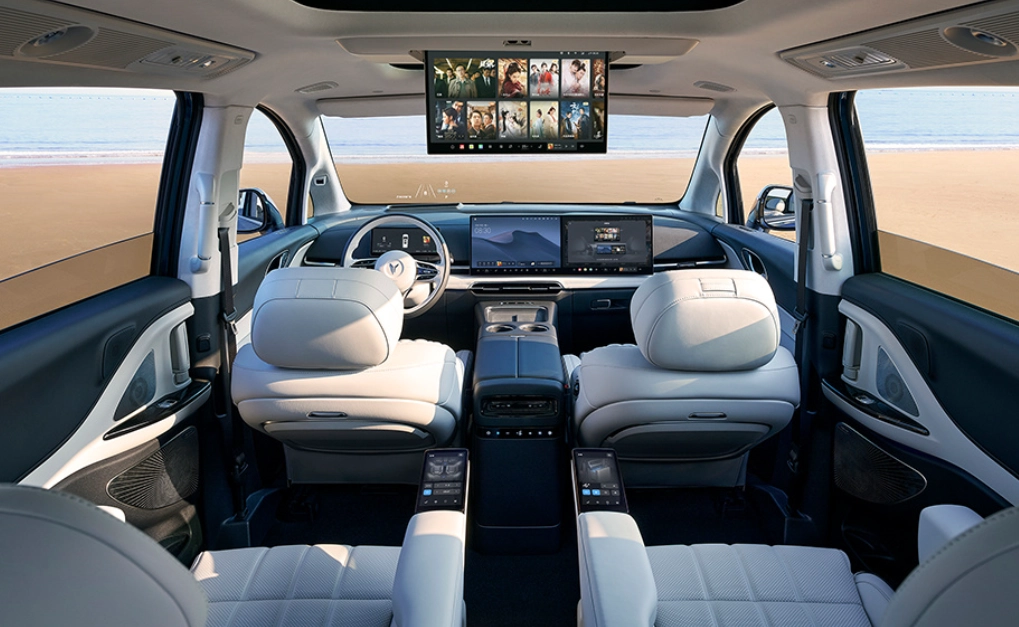 搭载双 15.4 英寸联屏,辅以 29 英寸 AR-HUD 抬头显示,二排设有 17.3 英寸娱乐屏