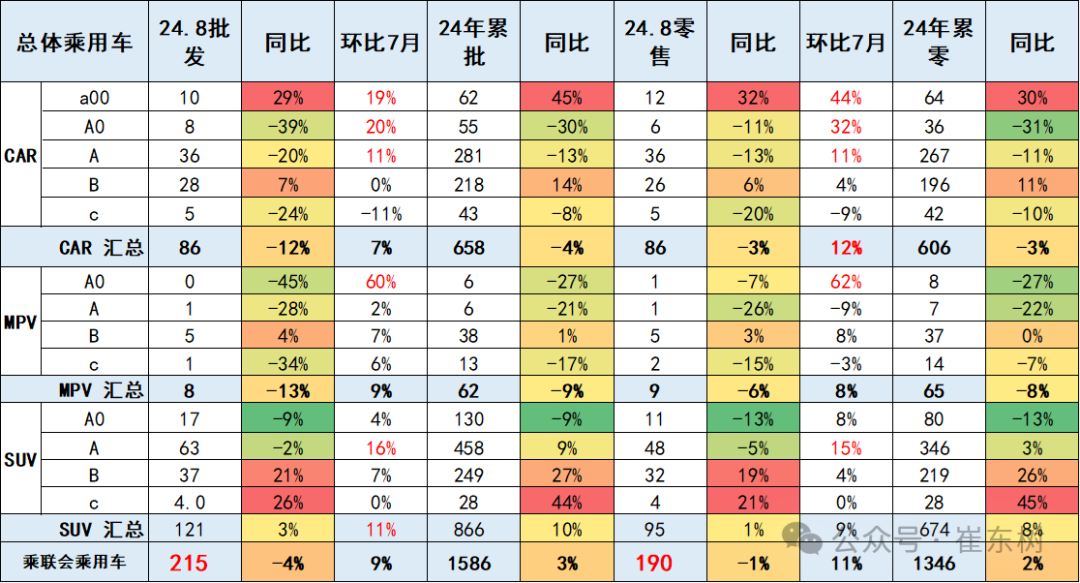 IT之家 9 月 15 日消息,今日乘联分会秘书长崔东树发文表示,随着 2-4 月的市场价格降价和促销力度大,消费者观望一段时间后,购买热情逐步释放,在国家报废更新补贴政策的推动下,2024 年 8 月乘用车市场零售表现较好。8 月的厂家销量相对保守,形成大幅去库存的特征。