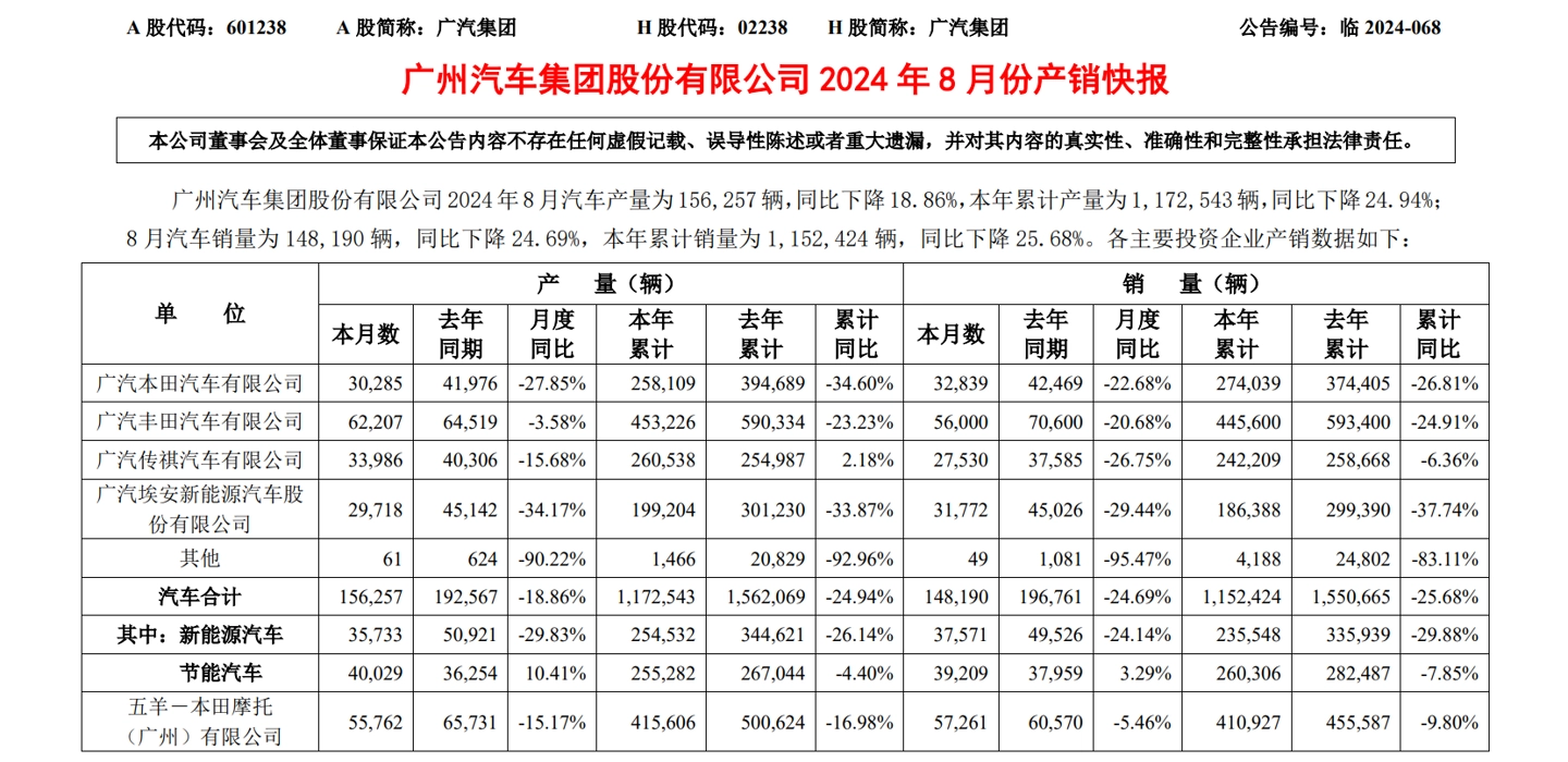 据IT之家此前报道,广汽集团 2024 年 8 月份产销快报数据显示,广汽日野汽车有限公司的产销量数据已被归类为“其他”。