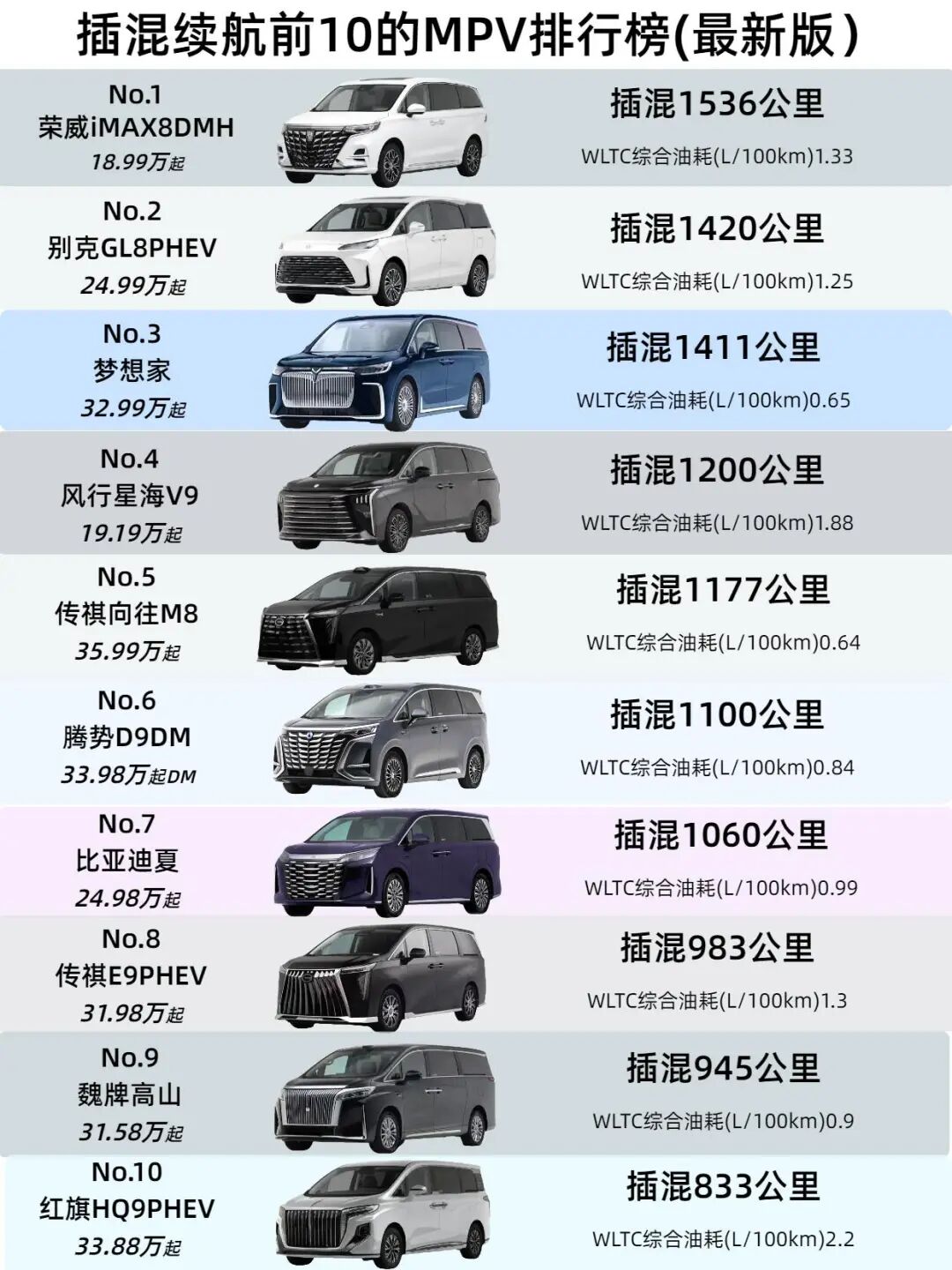 图/插混续航前10的MPV,来源/互联网 新能源观截图