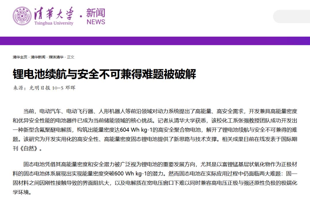 还有,节前清华大学张强教授团队也有一项固态电池电解质相关的研究被《自然》(Nature)收录,也就是说,中国科研团队接连拿出三项重磅的技术论文,不断宣告这个领域的重大突破。