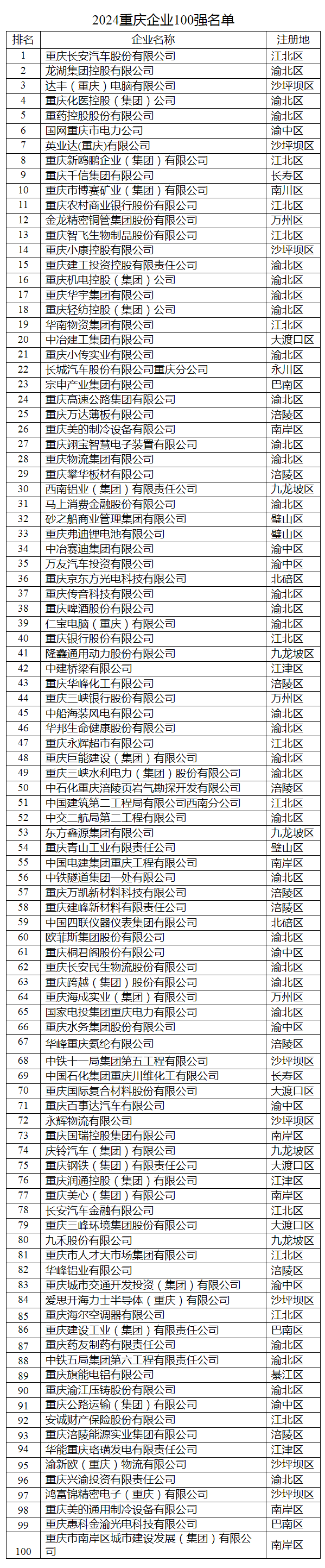 2025 重庆企业 100 强以中国企业联合会制定的中国企业 500 强的标准,经企业自愿申报,按照 2024 年企业营业收入从大到小依次排序产生。