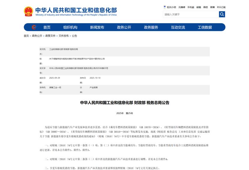2025年10月,工业和信息化部、财政部、税务总局三部门联合发布的2026-2027年新能源汽车车辆购置税减免新规,以技术门槛升级的方式,为高速发展的新能源汽车产业划定了新的赛道规则。