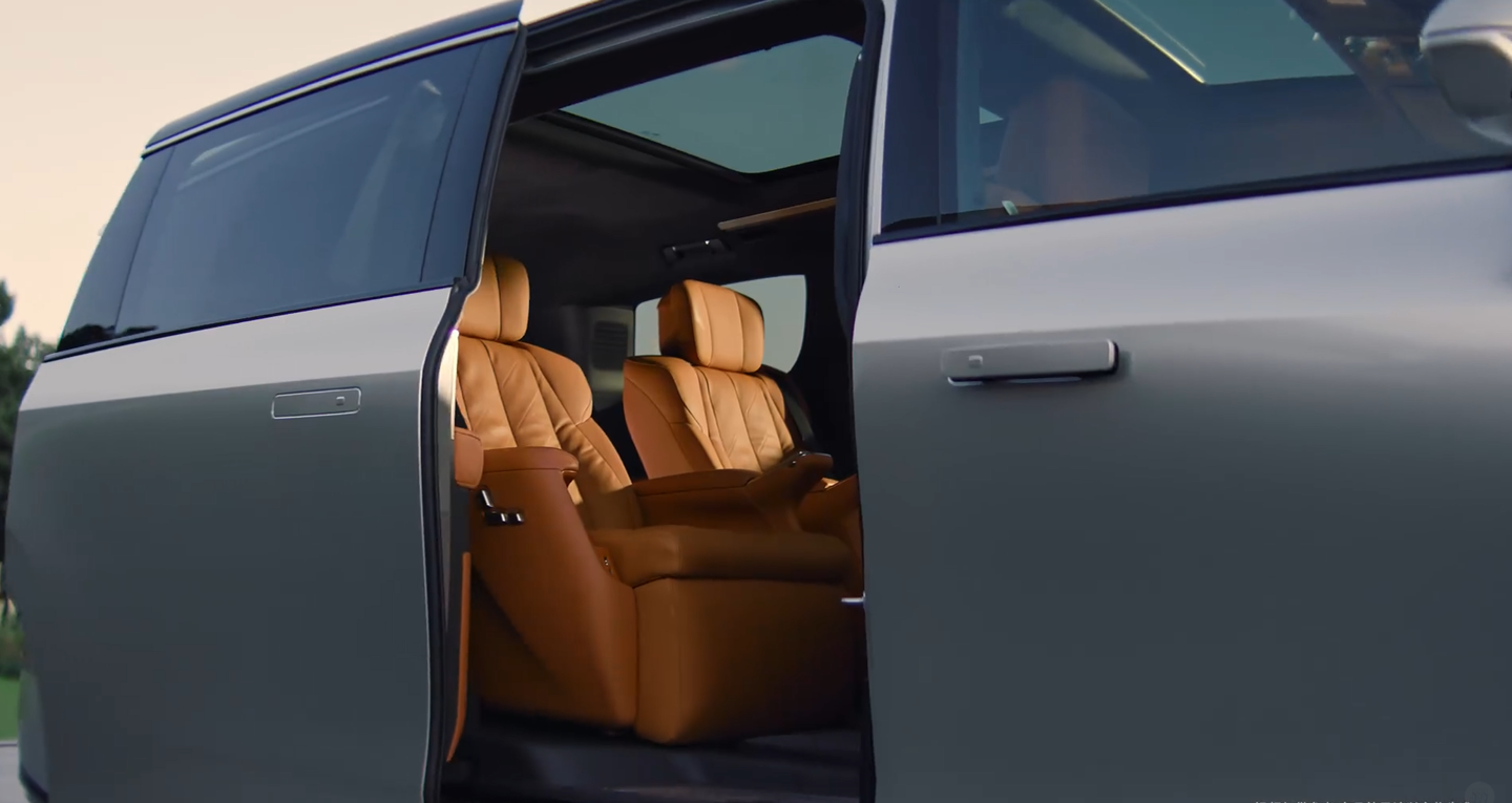 配置方面,新车配备了云台式超低礼宾空悬、手势智控滑移门,以及自适应零重力座椅。智能化方面则搭载了高通 SA8775P 芯片,拥有 50 吋全景 AR-HUD 抬头显示、便携式智控屏等配置。新车搭载了全新升级的“真龙”插混系统及“逍遥智行”辅助驾驶。