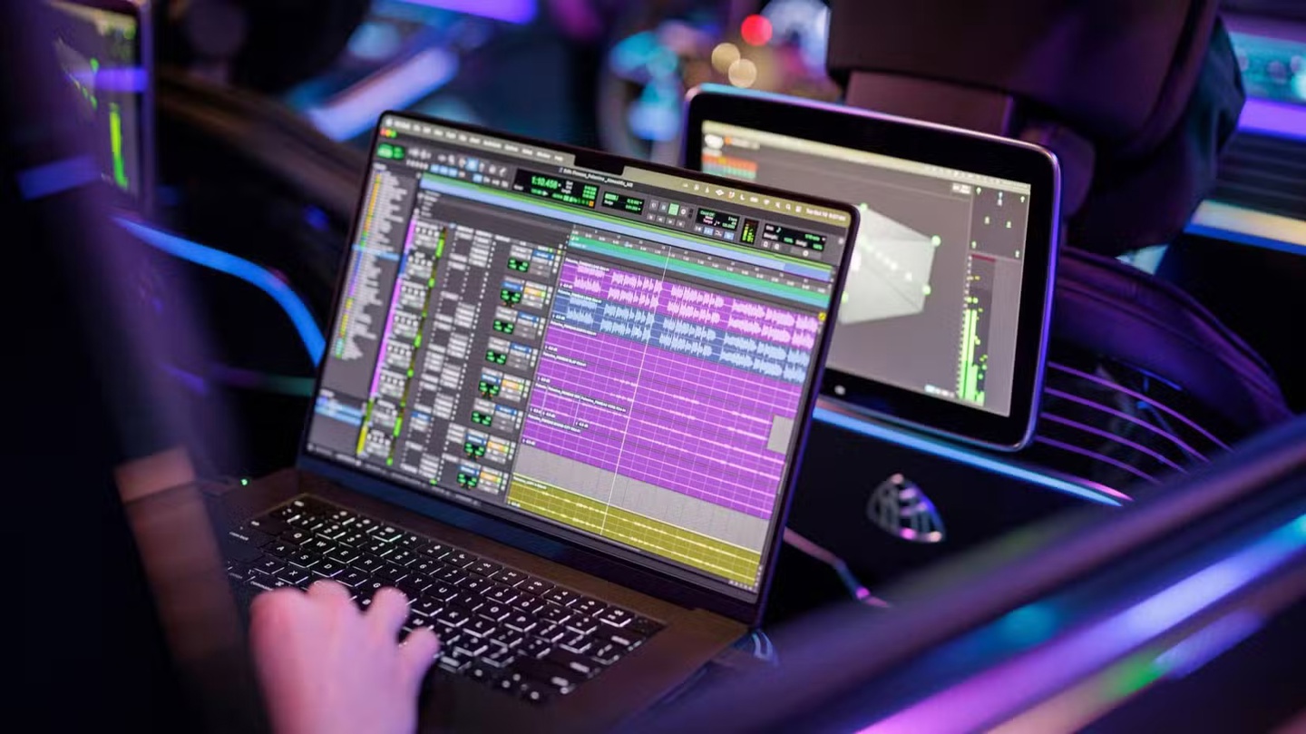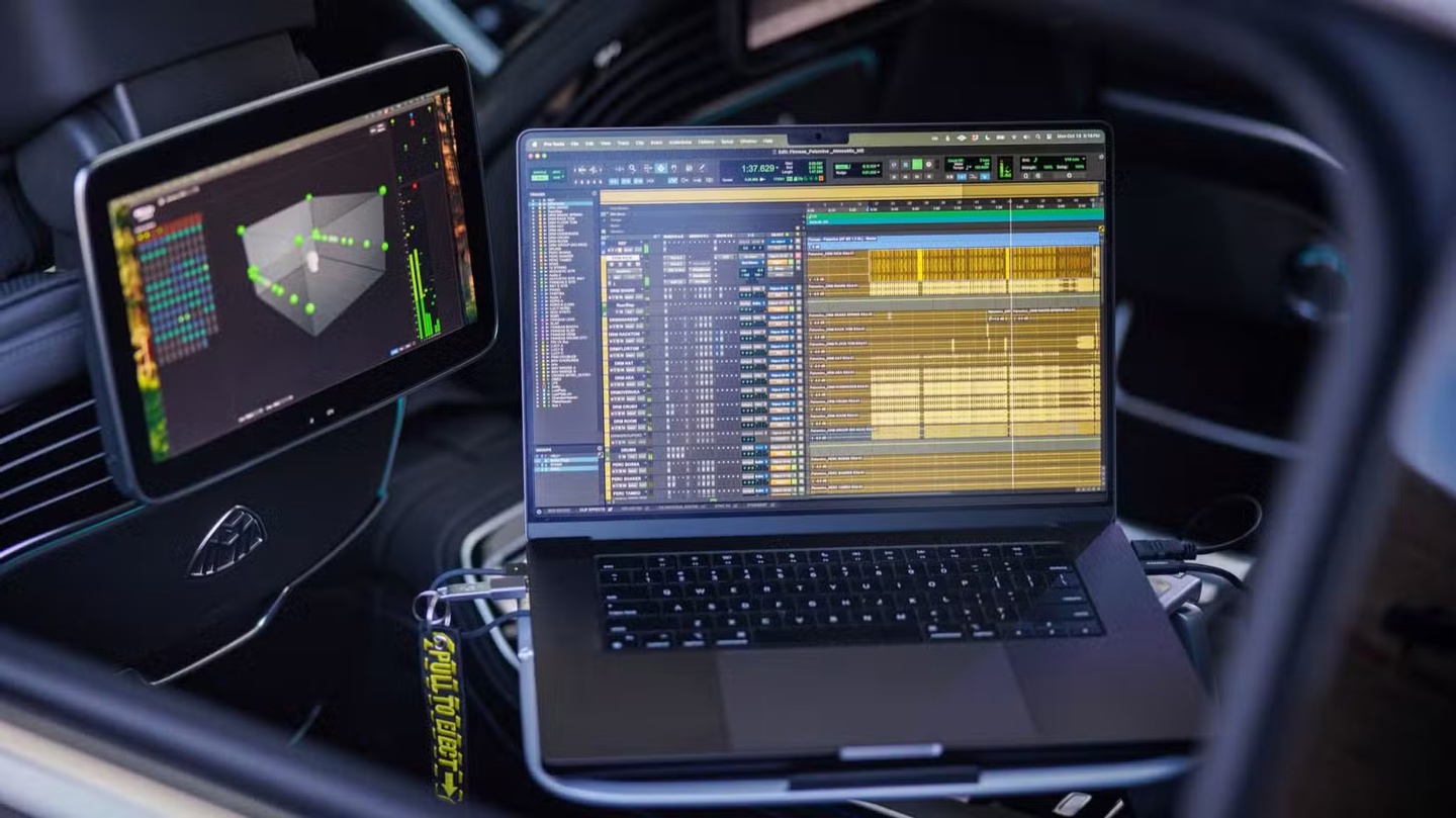 IT之家援引博文介绍,音乐制作人可以将装有音频制作软件的笔记本电脑接入车辆,系统便会与迈巴赫的车载屏幕和音响系统无缝协作。