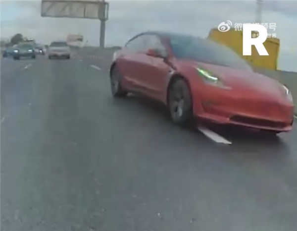 但突然的急刹,让视频车后一辆红色的特斯拉Model 3反应不及,驾驶员试图变道进入快车道时,被后方另一辆特斯拉撞上。