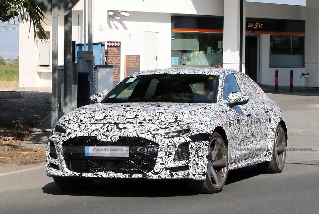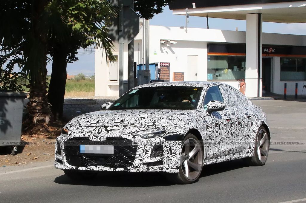 消息称奥迪轿车版 RS5 正在欧洲进行高温测试,其外观正展现出与旅行版车型同样强健且激进的风格,预估上市后将会和宝马的 M3、奔驰的 C63 竞争。