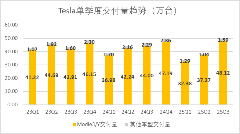 众所周知的是,“9.30”是美国购买电动车税收抵免政策取消的大限,因此特斯拉供给和需求侧在三季度末经历了一波脉冲式的增长。早在10月初特斯拉披露的近49万超预期交付量已经被市场消化,并且政策性集中交付不可持续。