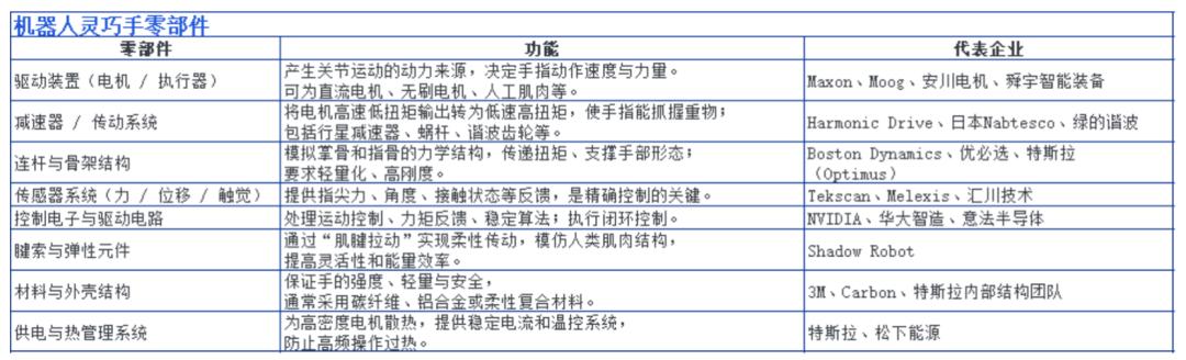 让一只灵巧手动起来离不开几个核心零部件:电机、减速器、连杆骨架、传感器以及热管理。